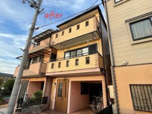 外壁には、パーフェクトトップ(日本ペイント)を採用しました。特に、ラジカル制御技術により、塗膜の劣化を防ぎ、色持ちの良さを実現しています。明るい色合いに仕上がり、N様邸の外観は非常に華やかで美しくなりました。