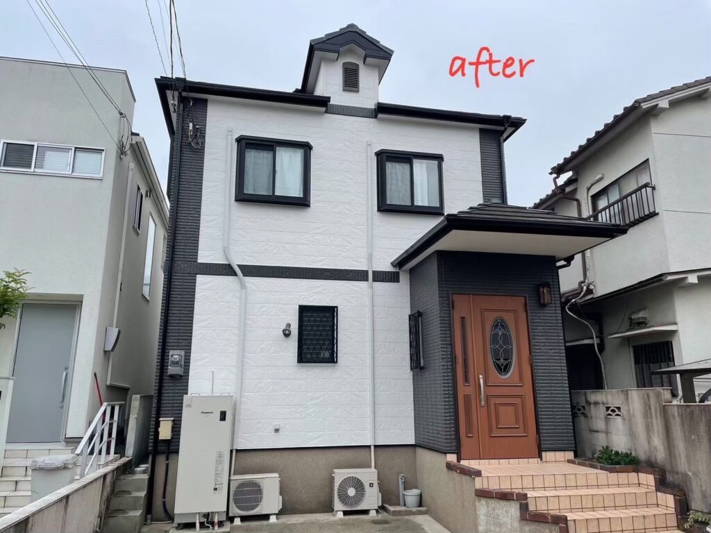 【摂津市 外壁塗装】施工事例|摂津市H様邸:クールホワイトとチャコールのツート...