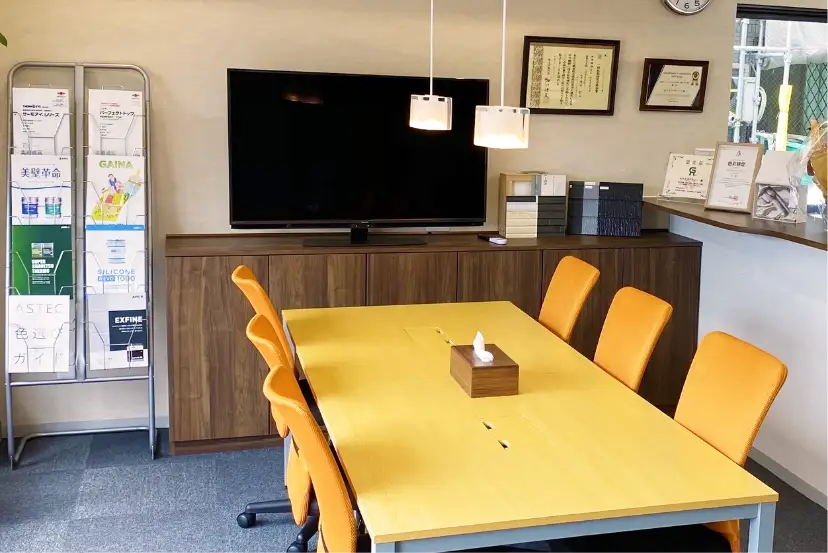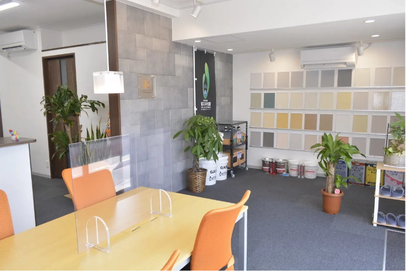 ウィザードコッパーのような繊細な色は、画面や小さな紙の見本だけで決めるのは勇気がいりますよね。ホクセツペイントでは、納得いくまで色選びを楽しんでいただける専用のショールームをご用意しています。
